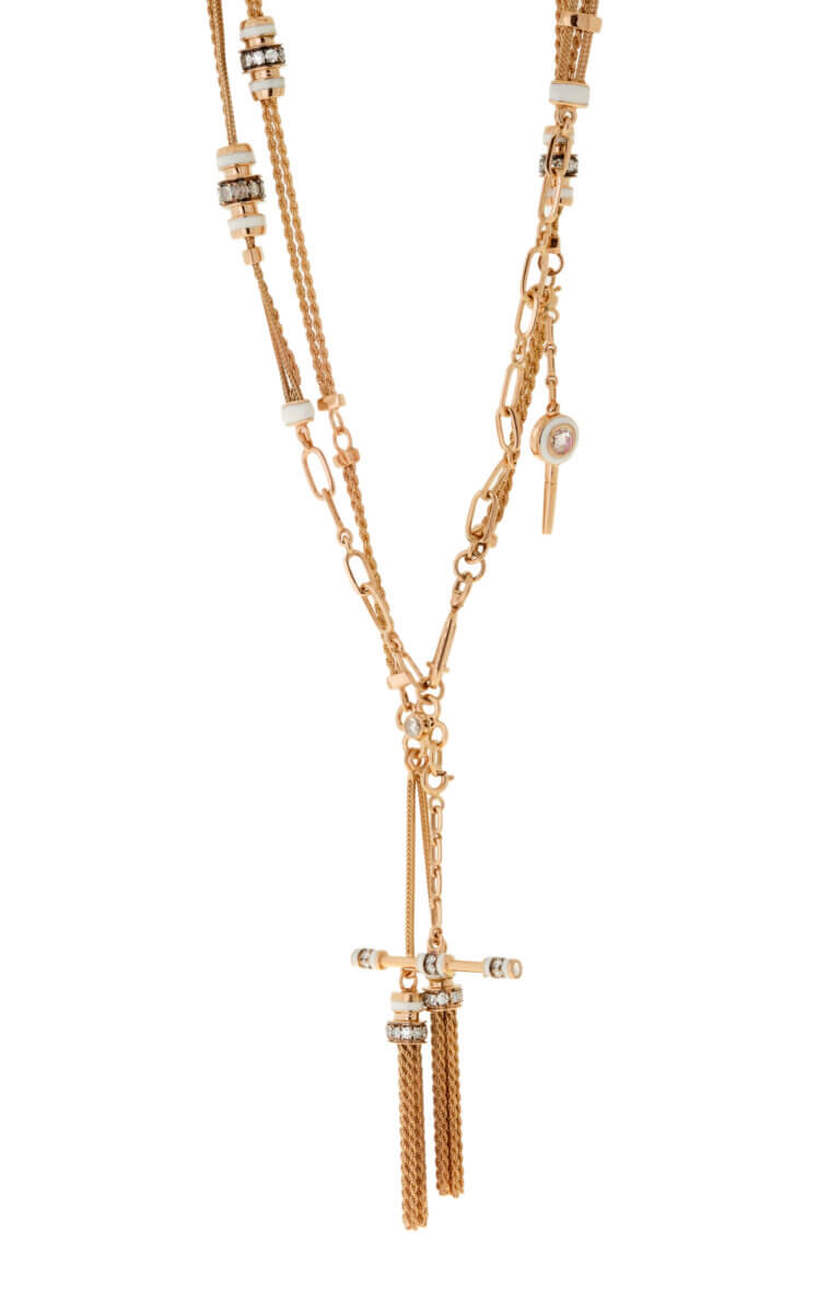 Selim’s series of Kastak necklaces pay tribute to pocket watch chains dating from the late Ottoman Empire. They are a dazzling jumble of various types of chains and charms and one or two tassels which he delightfully calls “pom poms.” Taylor Swift has brought the collection into the limelight. She has worn her Kastak necklace out and about on several occasions.